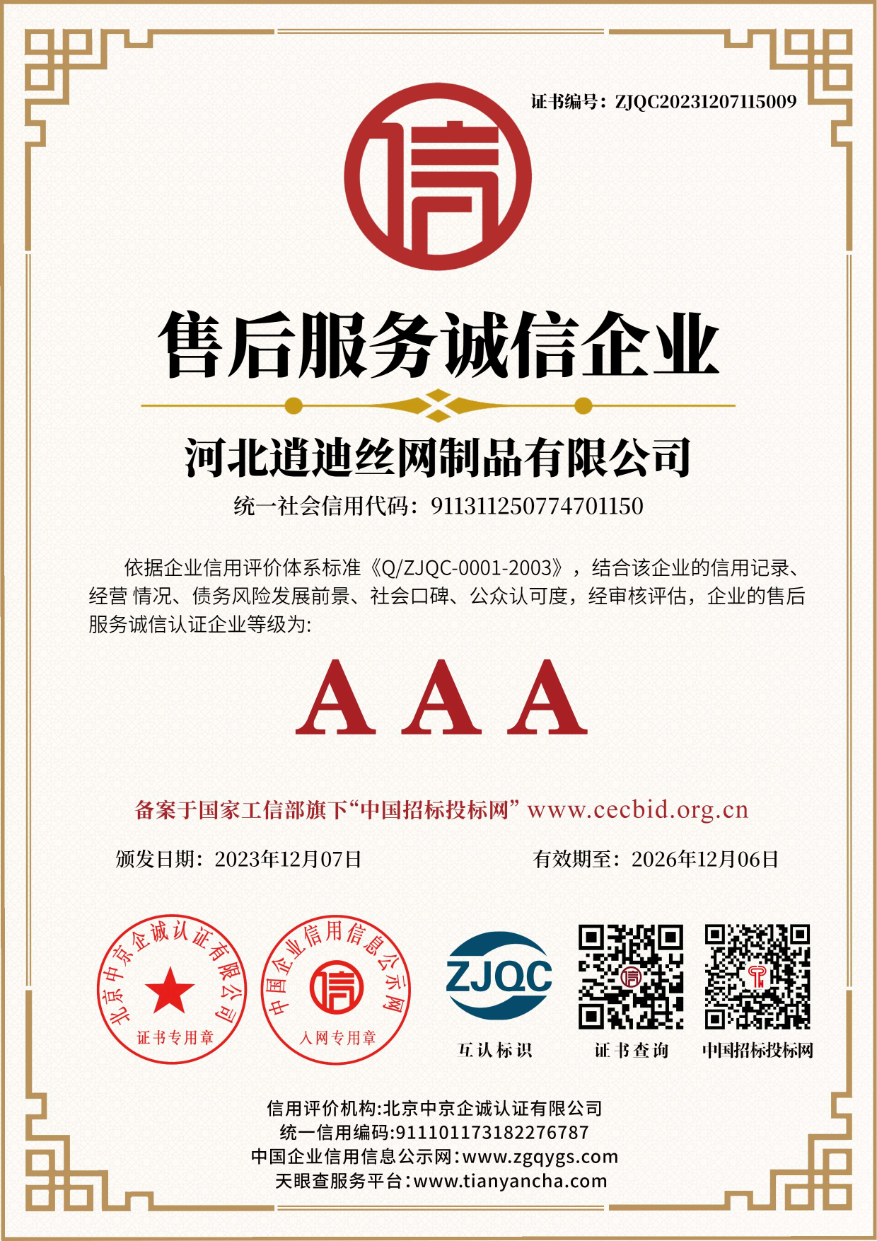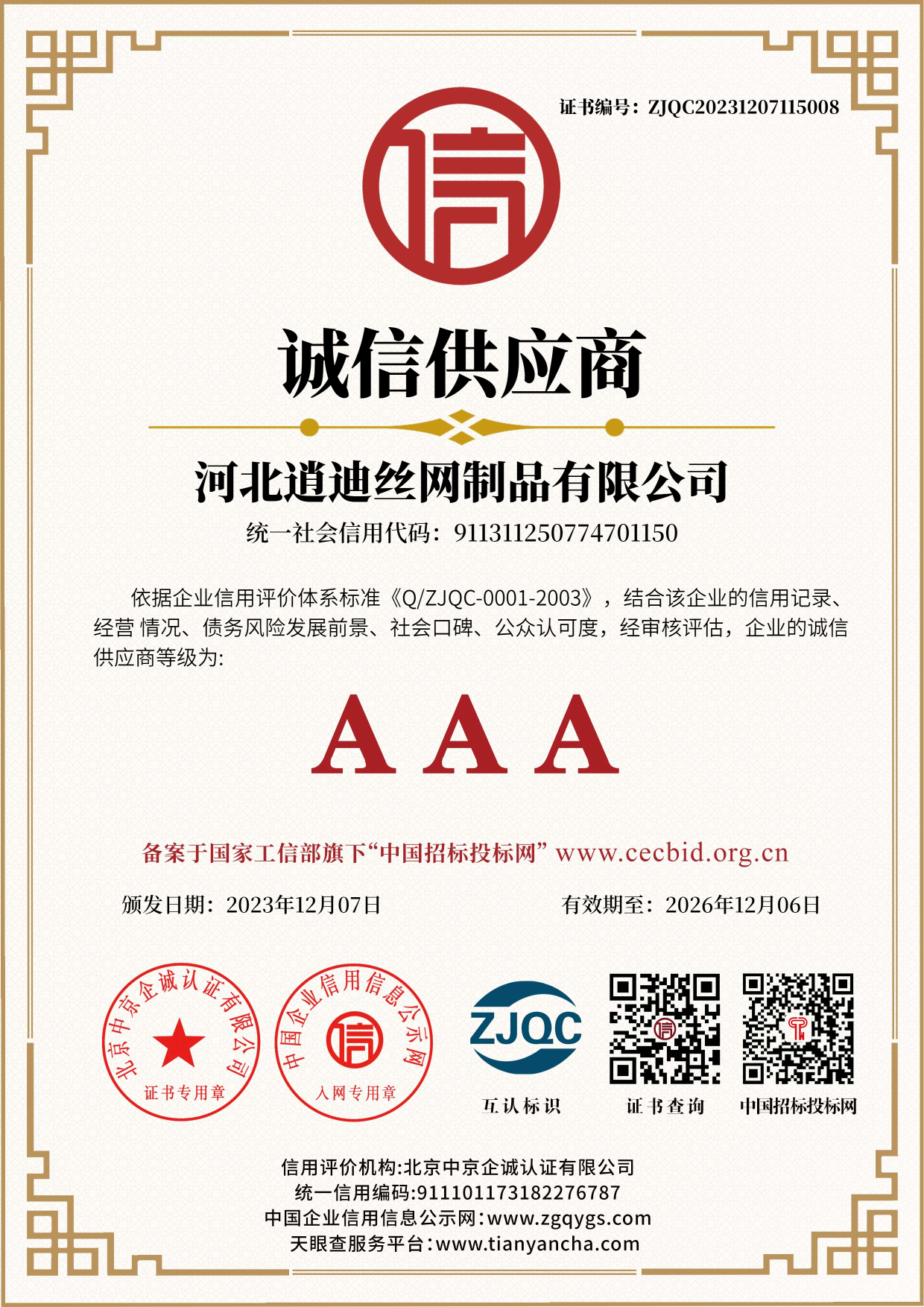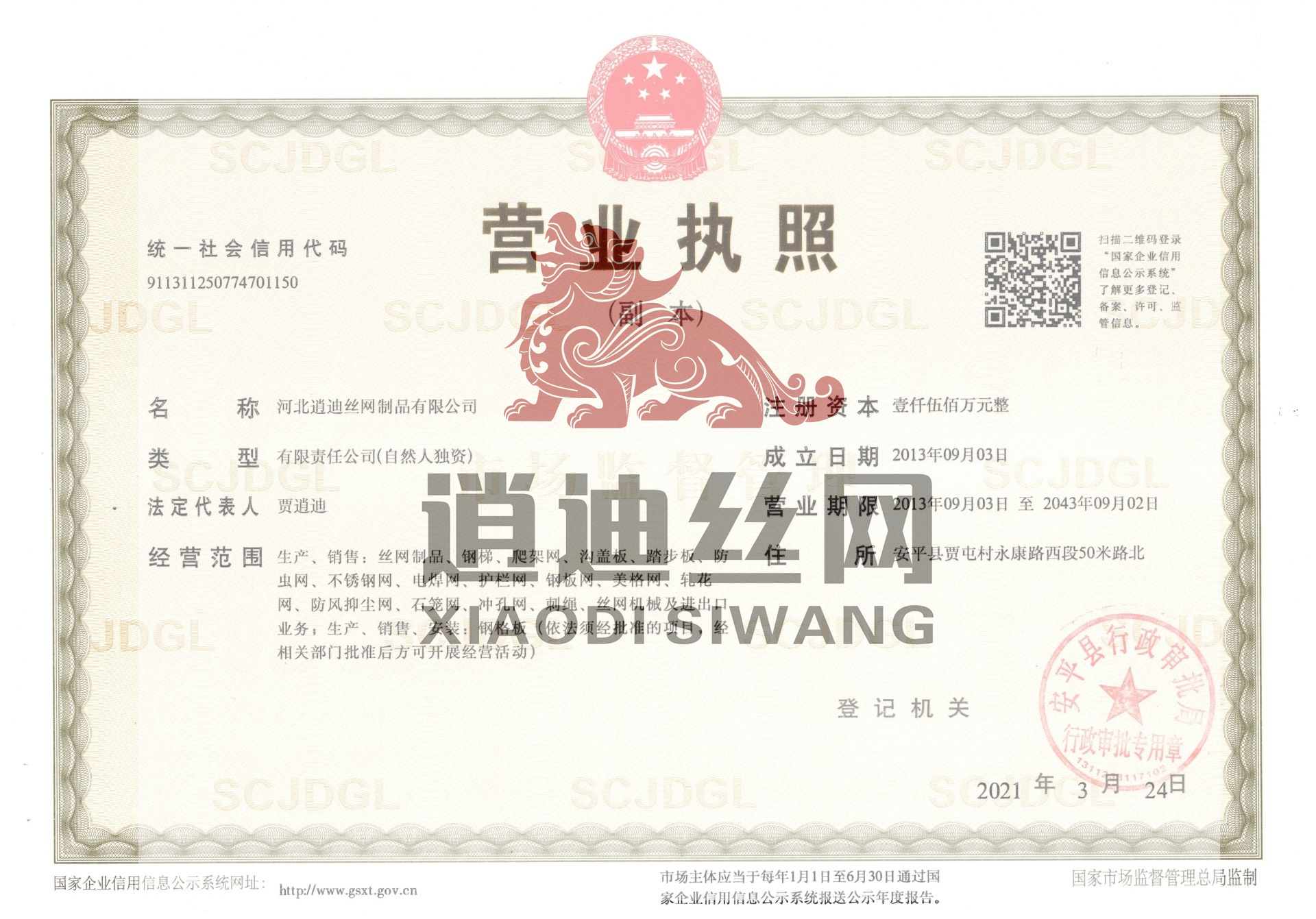 河北逍迪絲網(wǎng)制品有限公司誠(chéng)信天下,誠(chéng)信是我們公司一個(gè)原則問題不可撼動(dòng)的,以心中有誠(chéng)信的思想結(jié)交五湖四海的朋友,能達(dá)到雙贏是最好的,我們堅(jiān)信朋友多了路好走,我們公司都是老朋友多,我們一直是這樣做的。河北逍迪絲網(wǎng)制品有限公司成立于2013年注冊(cè)資本壹仟伍佰萬(wàn)整,主要生產(chǎn)沖孔網(wǎng),鋼格板,金屬防蟲網(wǎng),如實(shí)的實(shí)體廠家,是一家-研發(fā)-銷售-生產(chǎn)-安裝-售后一條龍公司,2019年通過了ISO 9001認(rèn)證管理體系符合GB/T 19001-2016/ISO 9001:2015標(biāo)準(zhǔn),同時(shí)通過了SGS認(rèn)證,擁有商標(biāo)版權(quán)2品牌,擁有一個(gè)著作版權(quán),河北逍迪絲網(wǎng)制品有限公司位于中國(guó)有名的(絲網(wǎng)之鄉(xiāng))安平縣,于天津,北京,雄安,石家莊相鄰,交通非常發(fā)達(dá),出口可以選擇天津港口非常近每天都有接貨送貨往返車輛,空運(yùn)可以選擇石家莊正定機(jī)場(chǎng),附近也有鐵路運(yùn)輸,當(dāng)?shù)剡€有兩個(gè)生態(tài)物流園區(qū)發(fā)往全國(guó)各地,我們沖孔網(wǎng)工廠生產(chǎn)設(shè)備有:普通沖壓機(jī),高速?zèng)_壓機(jī),自主研發(fā)小微孔沖壓機(jī),龍門沖,磚塔沖孔,重型沖孔機(jī),萬(wàn)瓦級(jí)別激光切割機(jī),3000W激光切割機(jī),焊接設(shè)備,折彎?rùn)C(jī),校平機(jī),剪板機(jī),精密校平機(jī),(對(duì)板面平整度要求苛刻的客戶群體0.5-0.2誤差)我們公司銷售市場(chǎng)沒有局限性國(guó)內(nèi)國(guó)外都供應(yīng),擁有出口權(quán)...